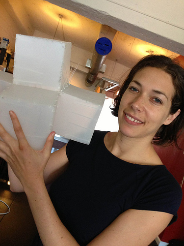 (Audrey, tightening zipties inside the nearly-finished section “A”)